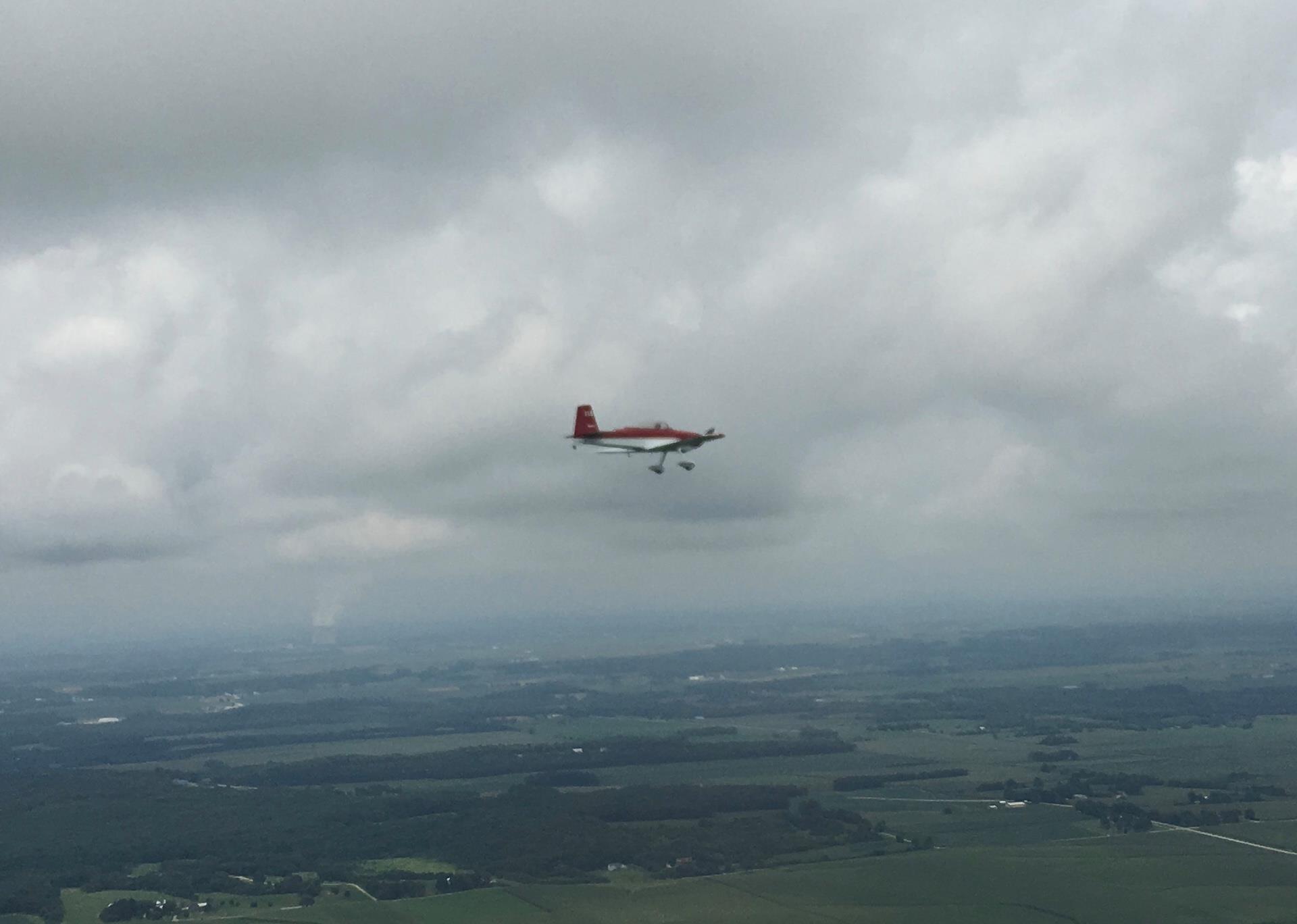 Tailwinds and blue skies all the way to northern Missouri was the flavor of the first leg. But things changed as we looked toward Iowa and Wisconsin. Massive storm systems live there. But we soldiered as far as we could get and Ken’s plan to skirt around the edge worked well. It did involve an hour or more of flying below a 2200’ ceiling on a hot and humid day. But, we were flying in the shade. Safely at our destination south of Oshkosh, we rest up for a busy week.