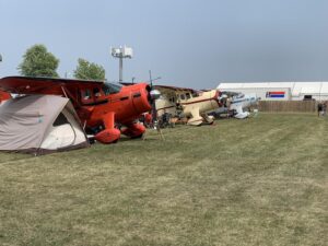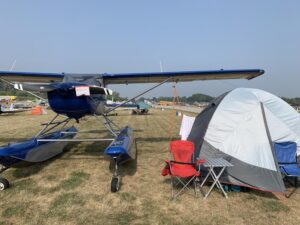 As I walked through the camping areas, I noticed that the tents seem to be growing as well.  Usually, airplane campers pack light and tents are small two and three person size.  This year I started noticing that comfort is more important that keeping it light.   Standing up in the tent for the stay on the field is something worth bringing. Camp sites are looking more like compounds.   My favorite is the Glastar on floats that was so tall that the tent was able to fit under the wing.